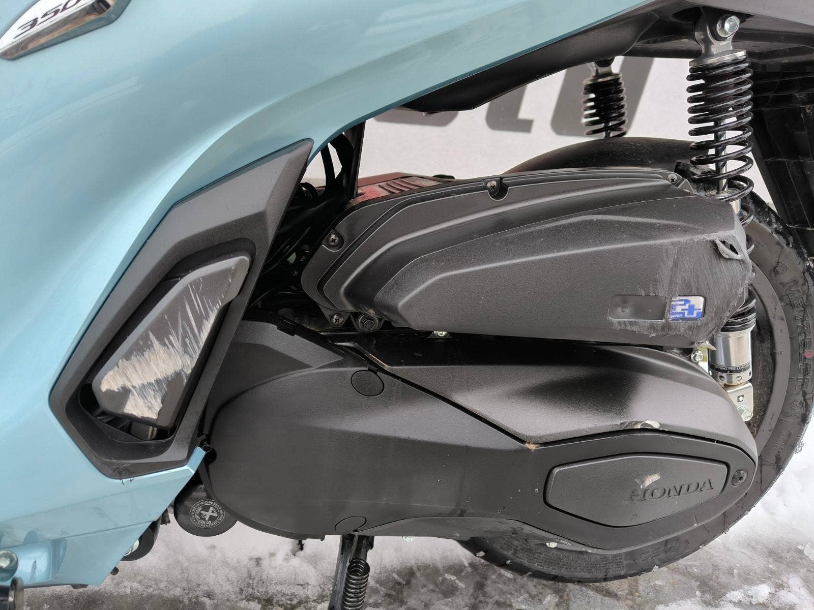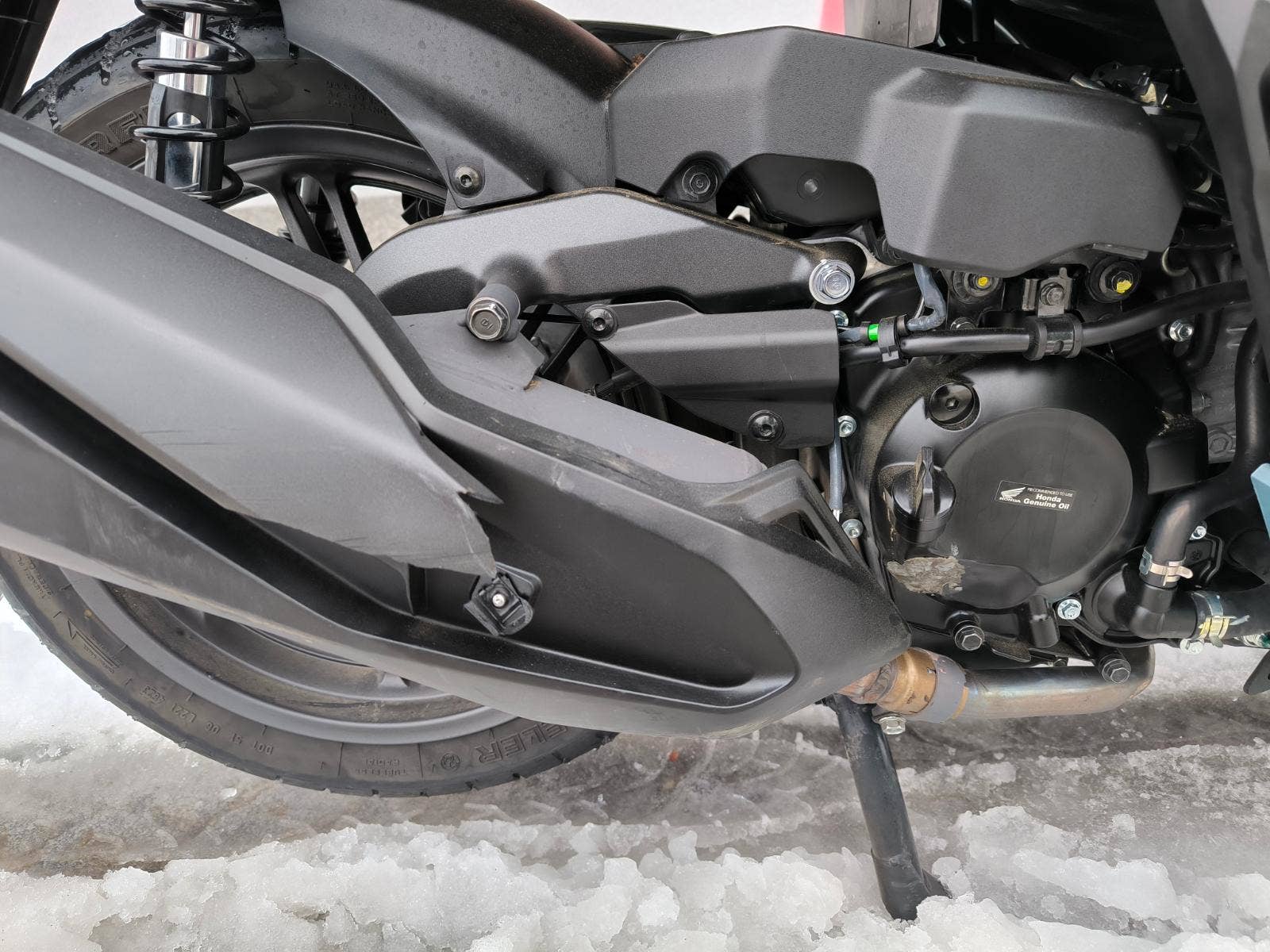 Lehce bourany motocykl viz foto, plne pojizdne, jen kosmetika, motor a podvozek ok.